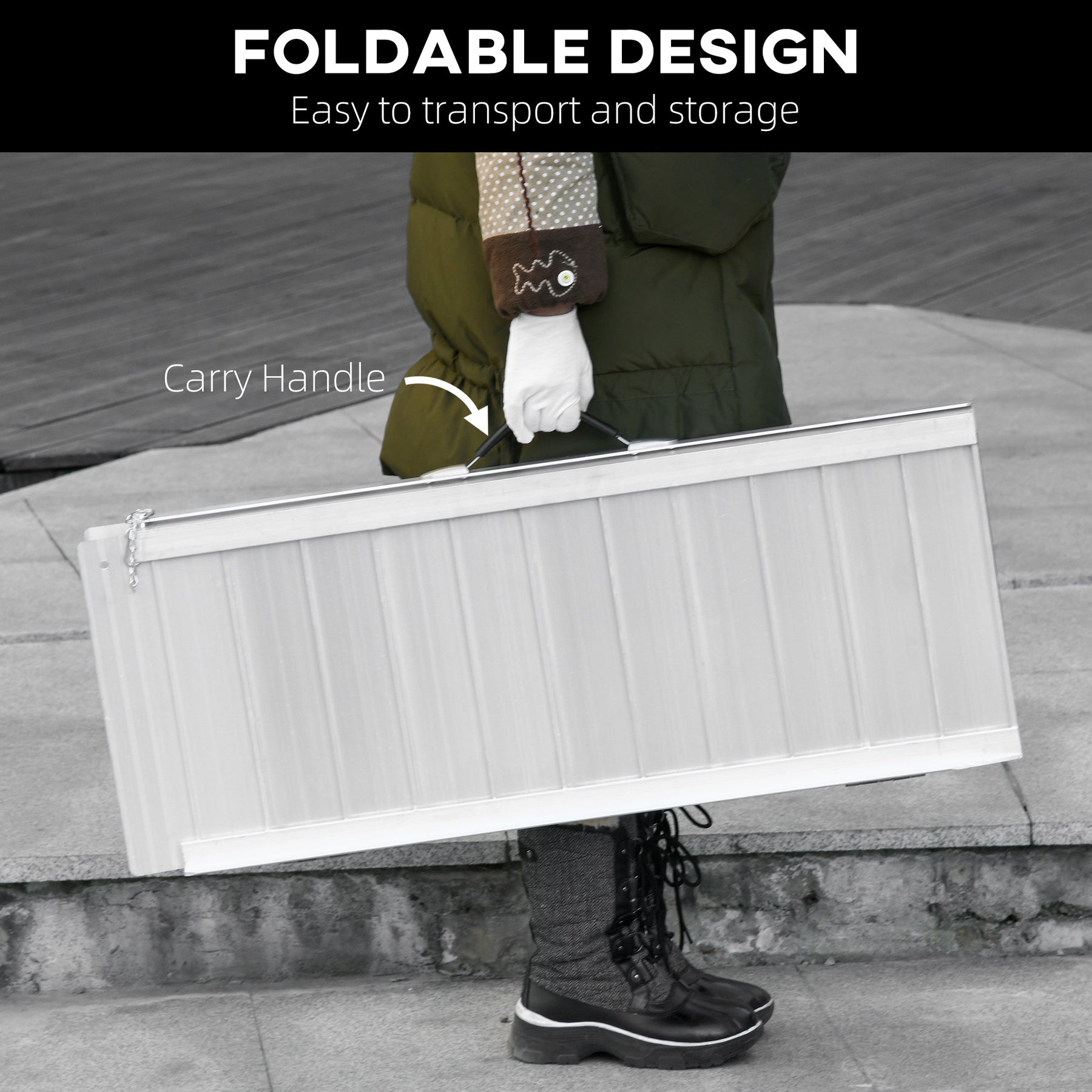 - Easy to Transport and Store: The foldable design makes this door ramp simple and easy to fold up and store in a vehicle or at home, while setup and teardown take only seconds. Suggest two people to move this ramp